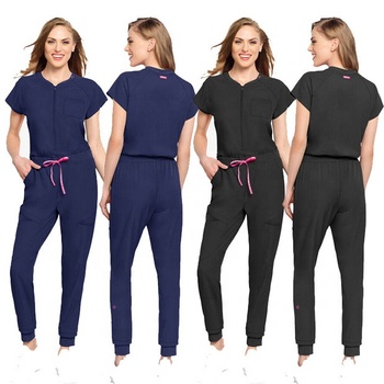 Conjunto de mono de enfermera de tamaño pequeño para mujer elegante tejido Spandex modelo OEM mono de uniforme de carga para uniformes de hospital
