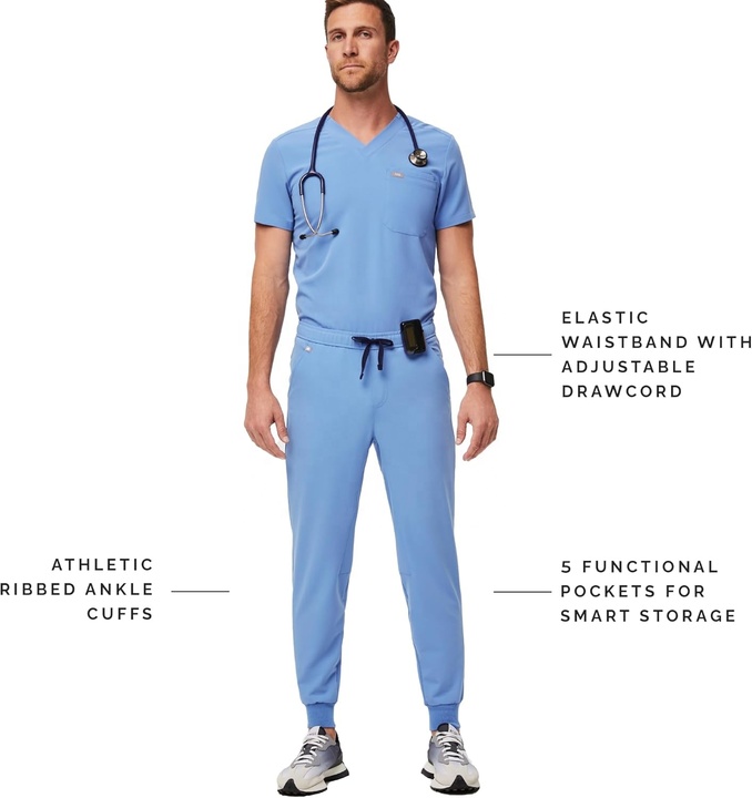 Cómodo Ceil Blue Scrubs para hombre, ropa de trabajo médica con logotipo personalizado con diseño de higos, traje de enfermería, talla 3XL