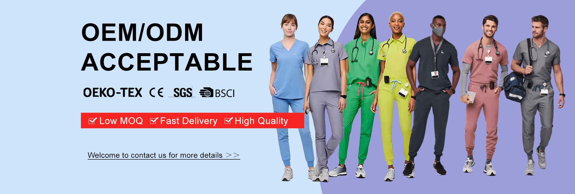 Conjuntos de fregado de enfermera personalizados para mujer, uniformes para correr hospitalarios de alta calidad, uniformes Tejidos quirúrgicos de rayón Spandex OEM